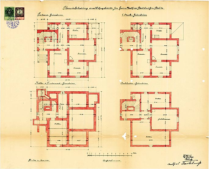 mapa zasadnicza rzut piwnicy rzut parteru rzut I piętra rzut II piętra z archiwum